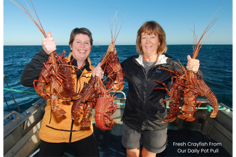 Enjoy fresh seafood from the Abrolhos Islands caught by you and prepared on board by our Chef. We practice responsible fishing to protect the fish stocks at the Abrolhos Islands. All seafood taken is consumed on board.